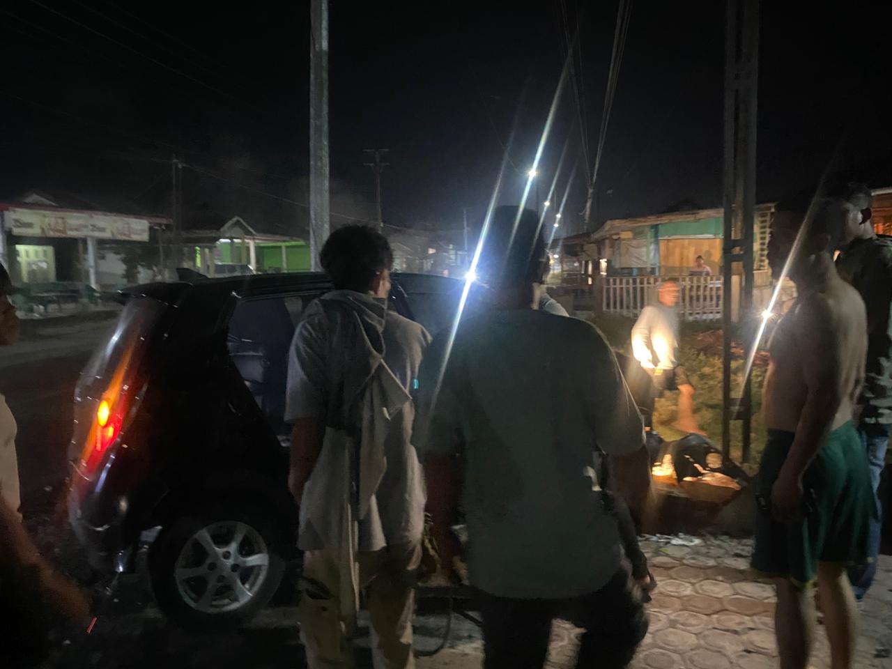 Lantas mobil menabrak hancur dinding pembatas dan membuat suara yang cukup keras yang dilanjutkan dengan bunyi letupan dari radiatornya. warga yang mendengar langsung keluar rumah untuk menyelidiki asal suara. Para korban mengalami syok tetapi untungnya tidak ada korban jiwa, hanya cedera ringan.